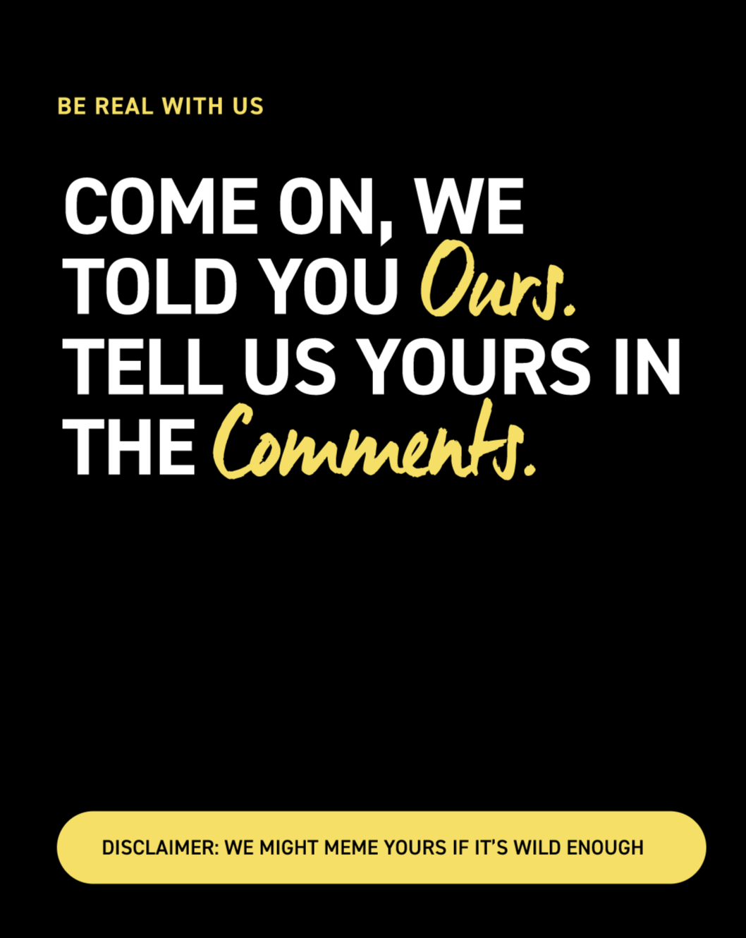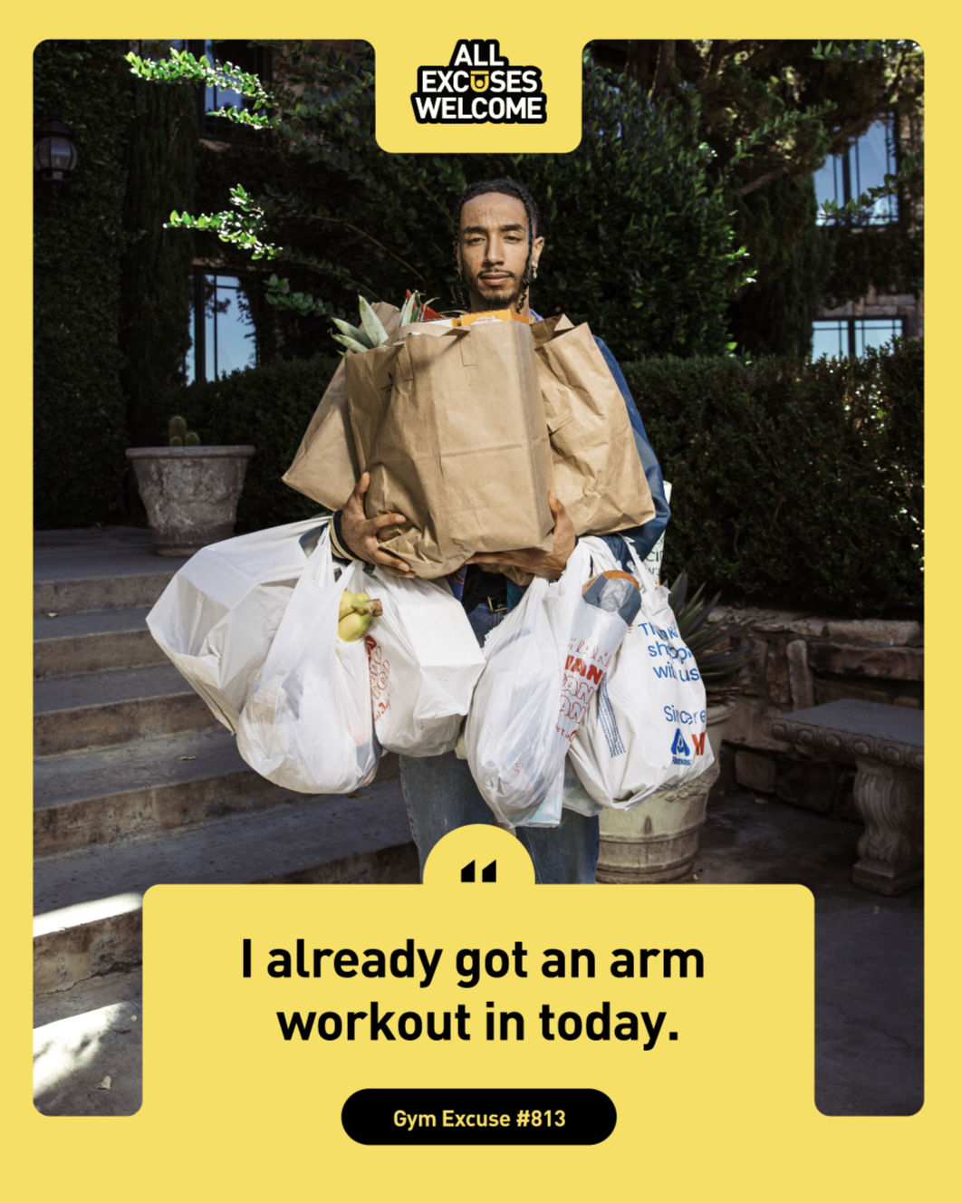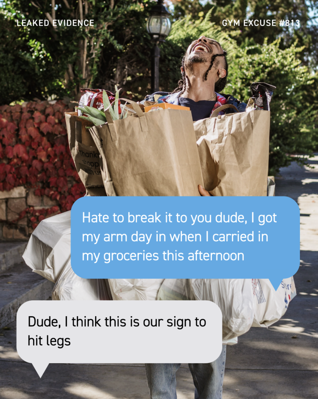 After the first round of excuses was a major success, the team re-engaged with us to roll out 6 more excuses—that I got to ideate and write—as seen below. Check out the BTS of capturing these on photo & video.