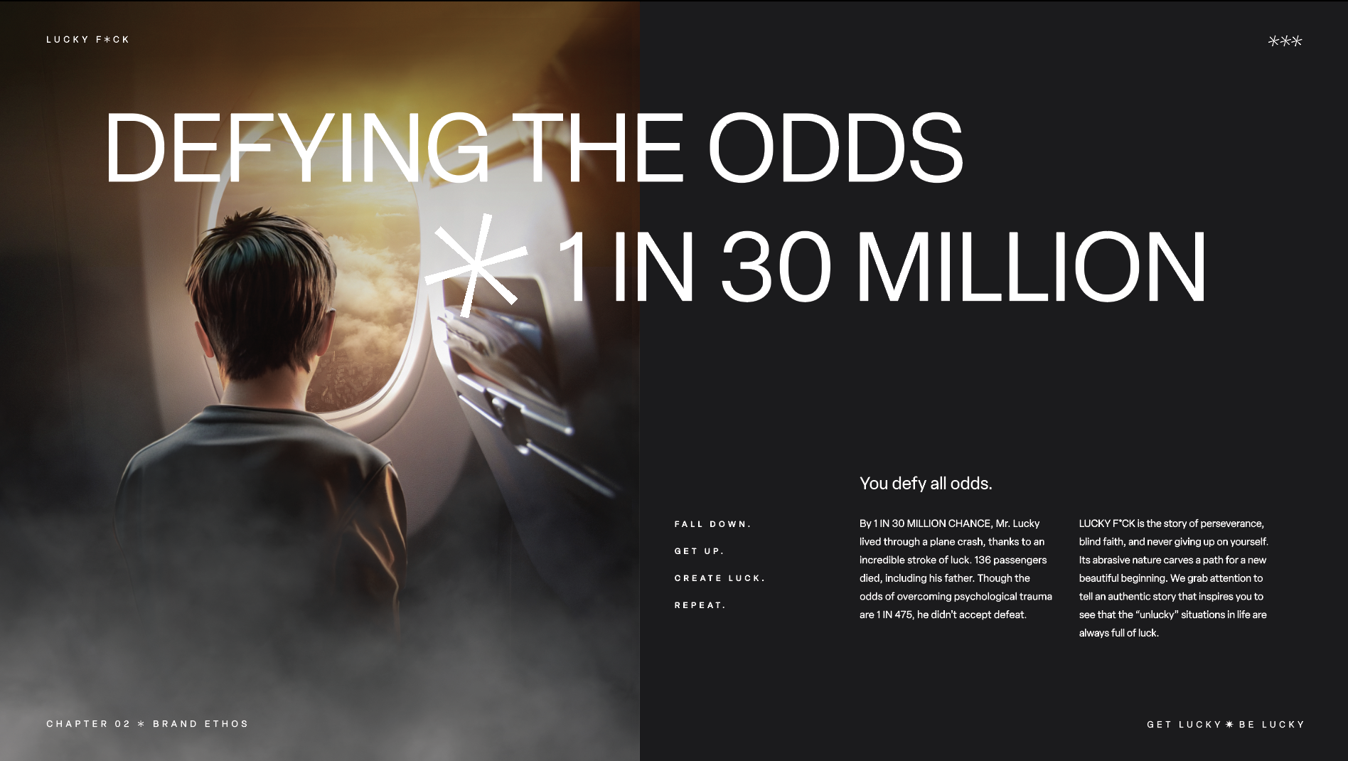 The story behind Lucky F*ck is nothing short of legendary. Founder Richard Laver, AKA Mr. Lucky, survived a 1 in 30 million plane crash and overcame 1 in 475 odds of psychological recovery. His story is one of perseverance, blind faith, and never giving up—so his brand had to embody that same relentless spirit.