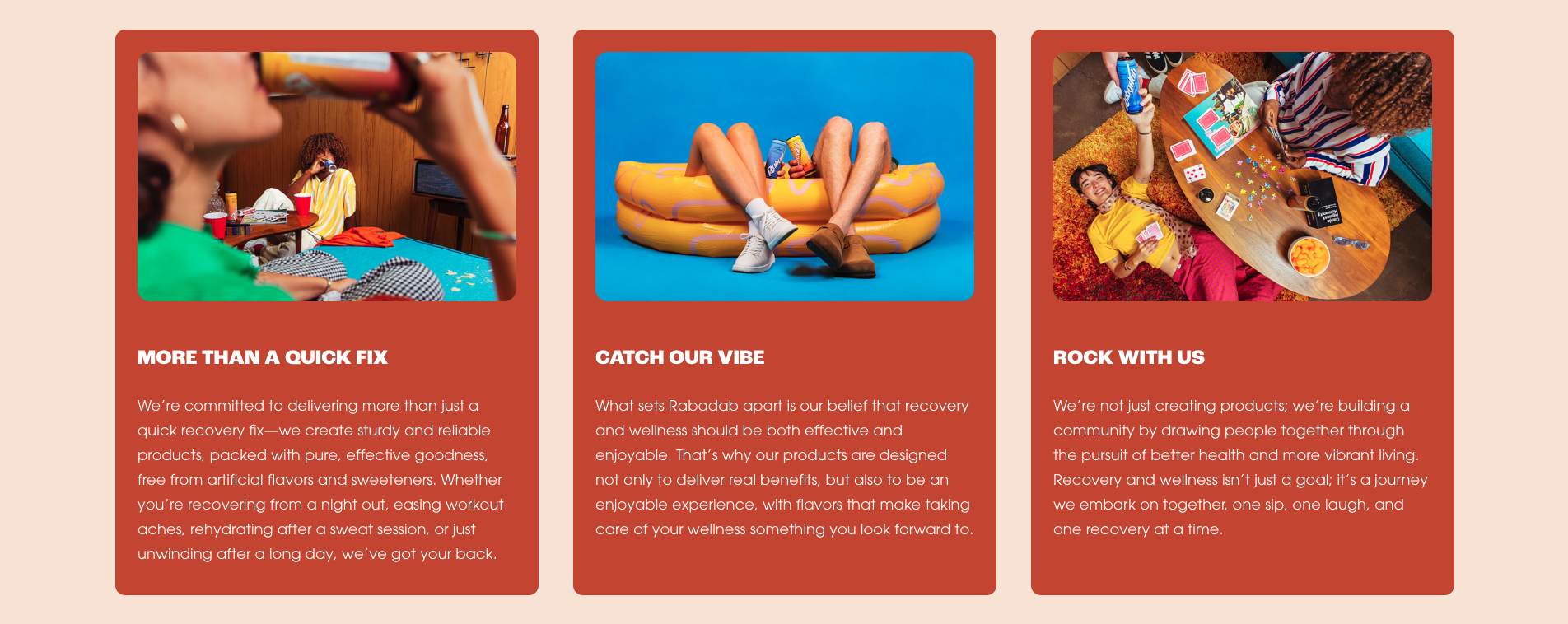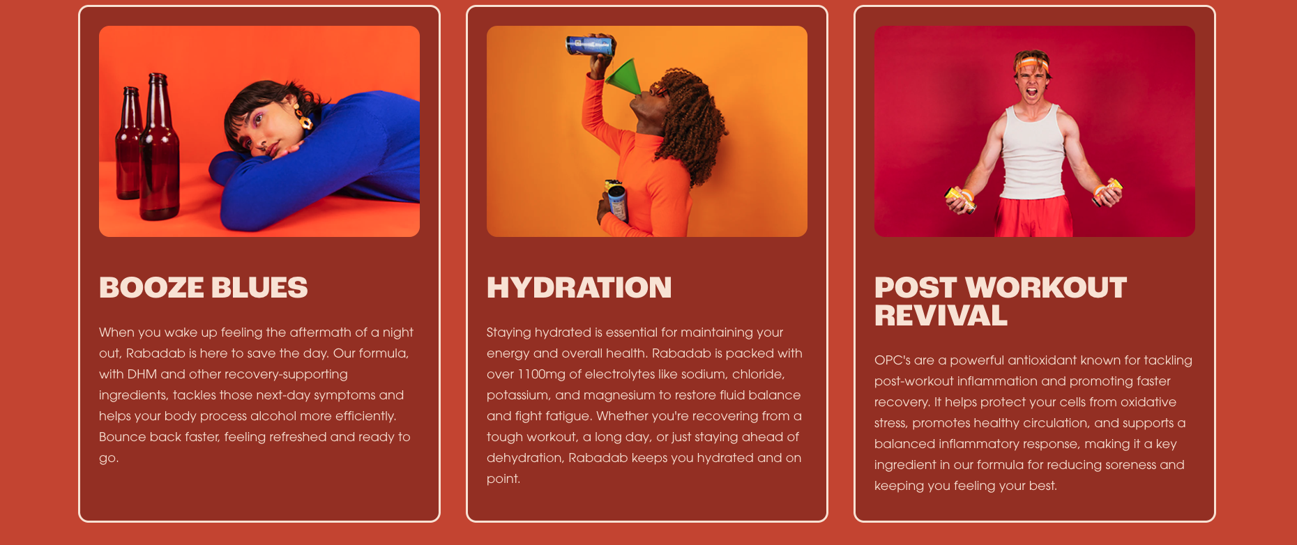 Rabadab means “no bullshit”. This brand was born to bring consumers a no-BS recovery product whether they need to replenish after a night of drinking or working out.