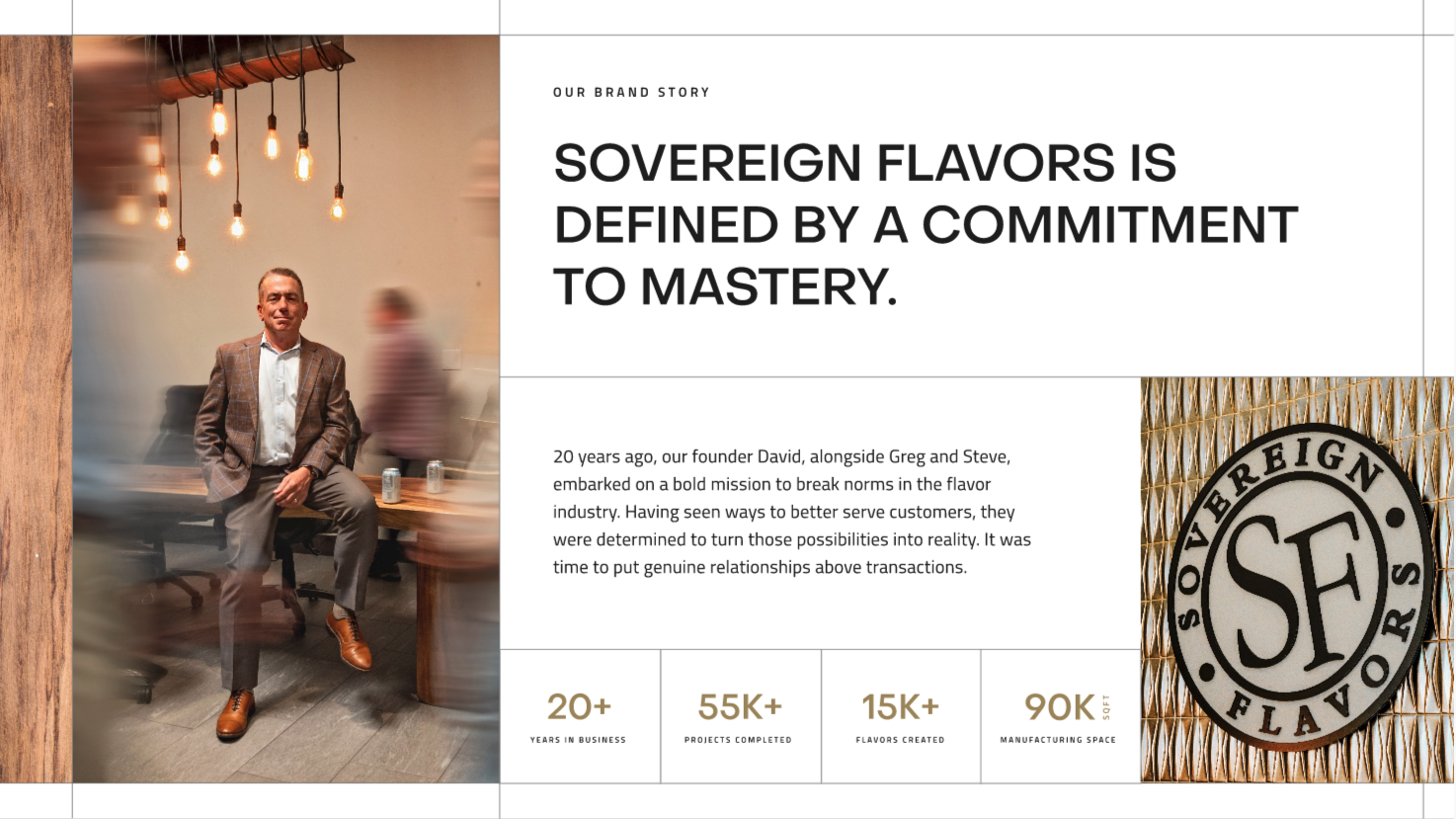For over 20 years, Sovereign Flavors has been the invisible force behind the flavors you know and love—quietly shaping the beverages and foods that fill grocery store shelves. But as they set their sights on the next stage of growth, they needed a brand that matched their influence. That’s where Movetic came in.