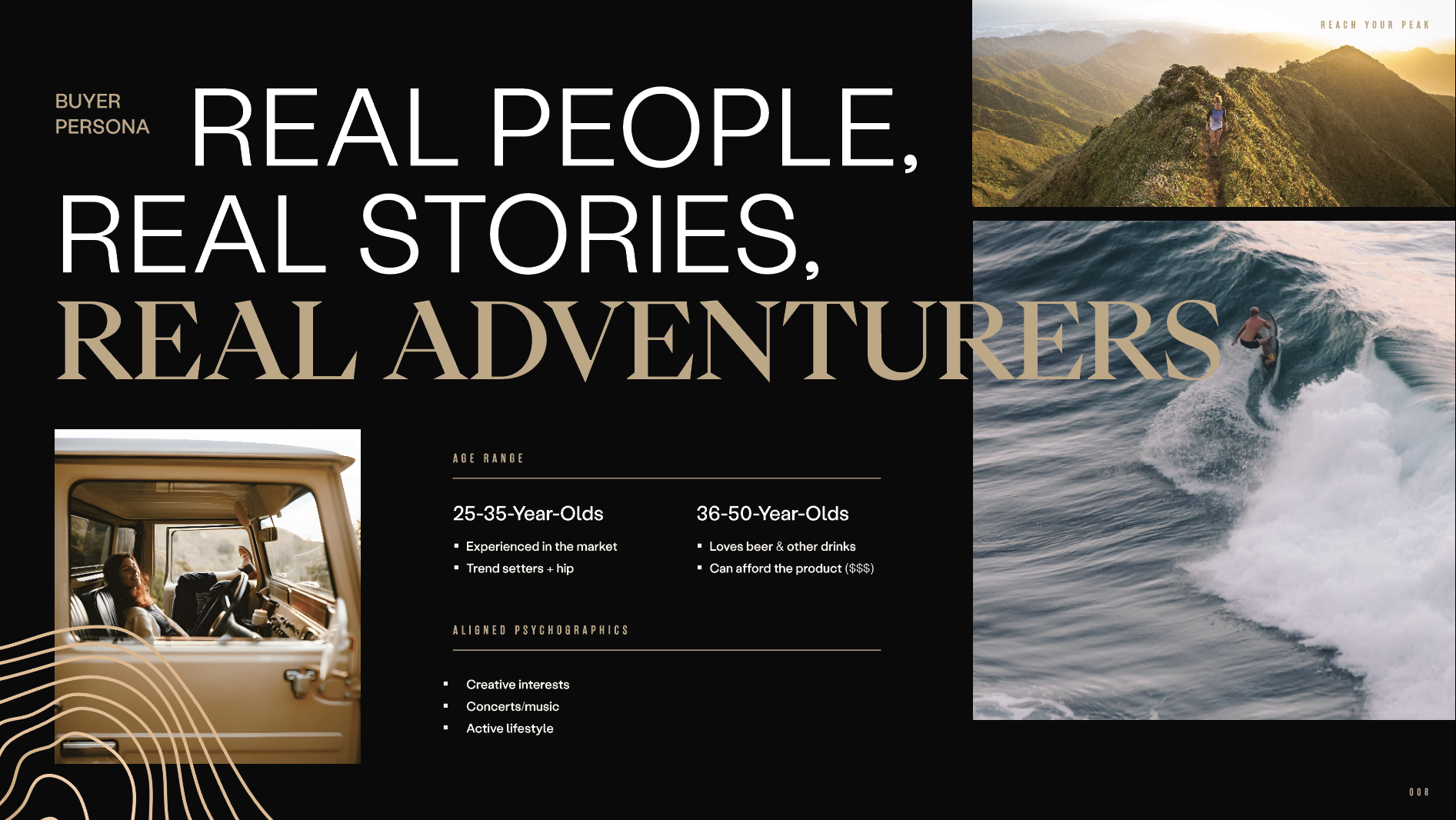 Through deep collaboration and exploration, we executed a bold new brand strategy—developing a refreshed brand book, reimagining product cans and packaging, and fine-tuning the messaging to welcome more adventurers into the fold. The result? A brand that still refuses to compromise—but now invites more people to live life with the same fearless spirit.